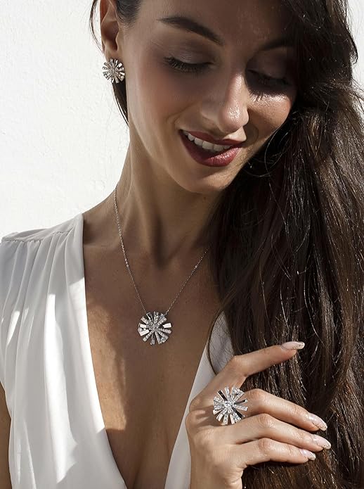 Conjunto de plata inspirado en una flor con circonitas